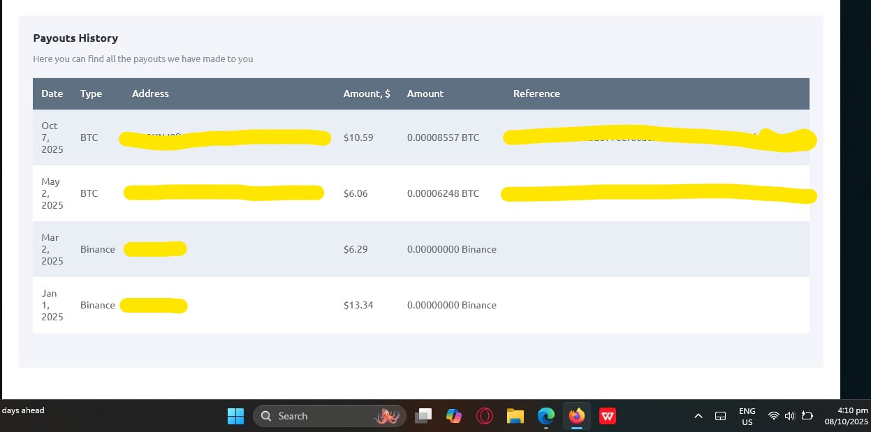 Hi, did you request the payment, or did they pay you automatically? I also wanted to know if, at the time you received the payment, you had the ‘request payment’ button or if you just went to settings and added your BTC wallet (I’m guessing again, because I see a previous payment to a BTC wallet as well)?